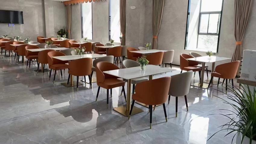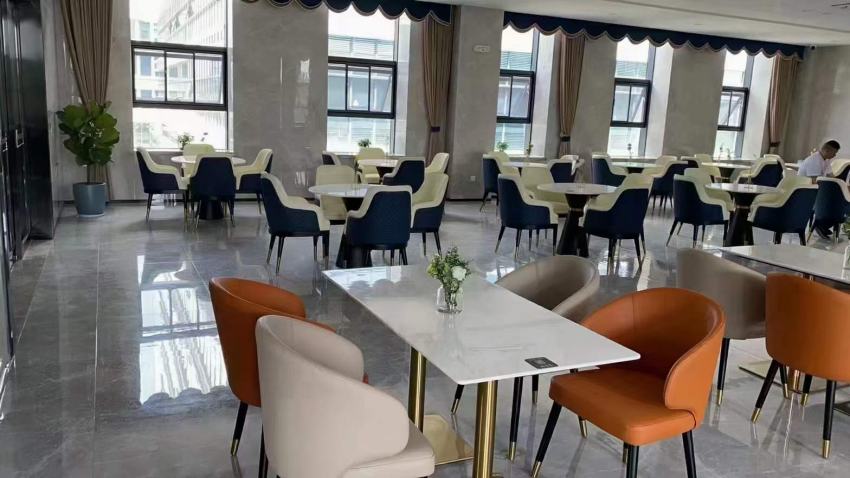 在為4S店推薦餐桌椅過程中,考慮到以上兩點,我們建議客戶使用當下流行的巖板餐桌,它不僅耐刮耐磨抗油污上檔次,而且避免了實木餐桌的開裂問題,同時輕奢風格的巖板具有時尚潮流,非常深受4S店年輕員工的喜愛。