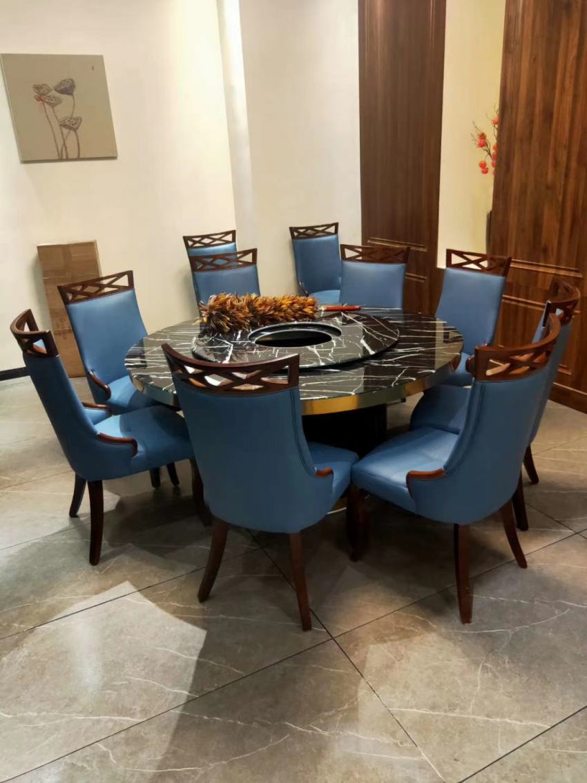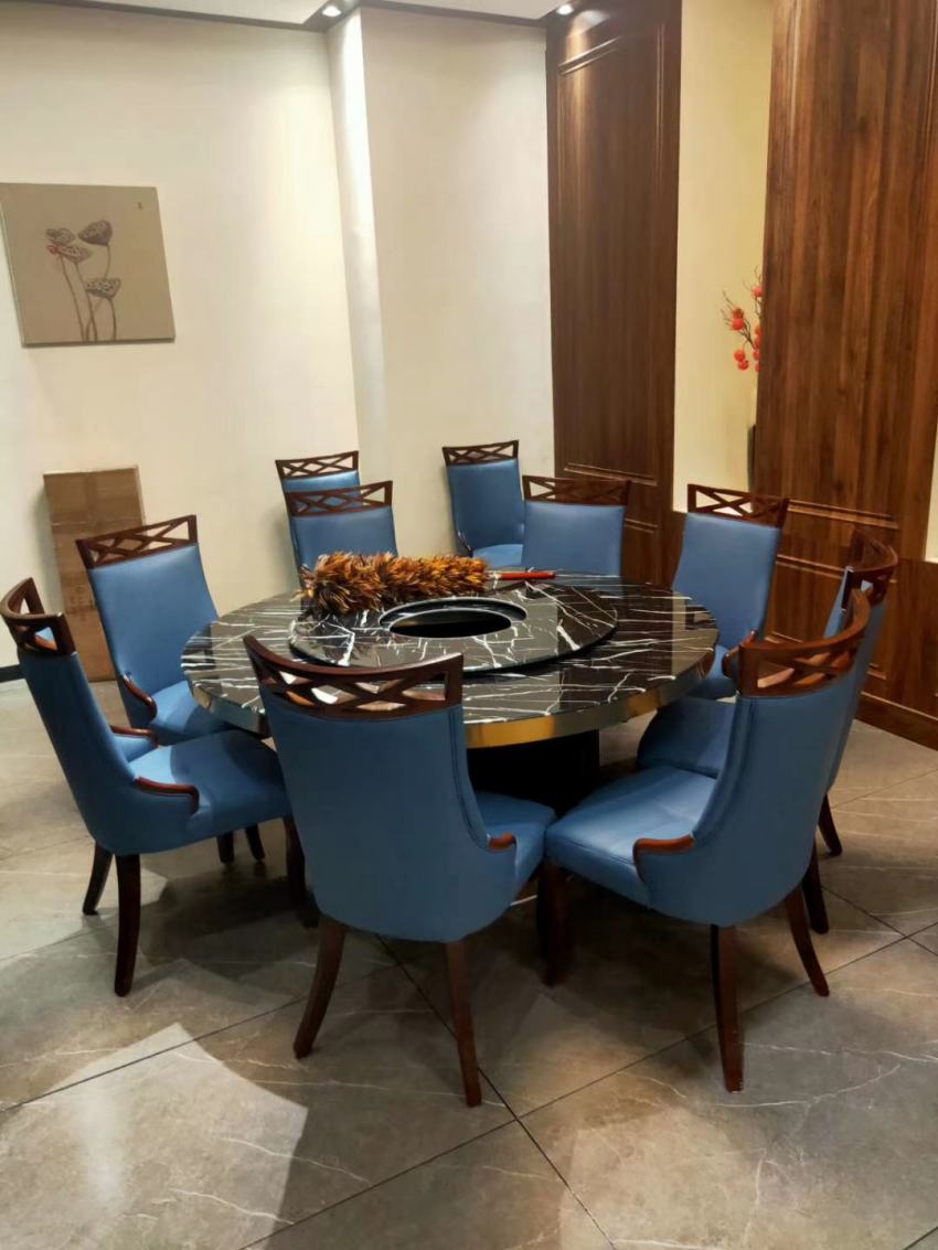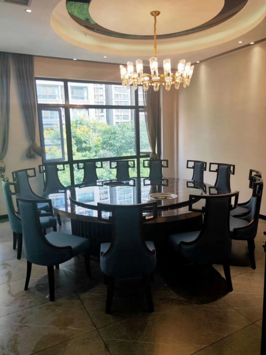 榆林塞北閣大理石火鍋圓桌椅家具案例