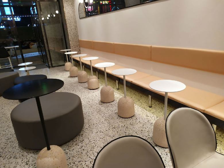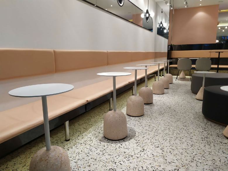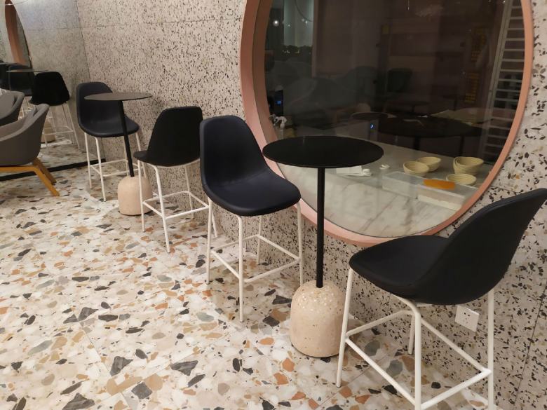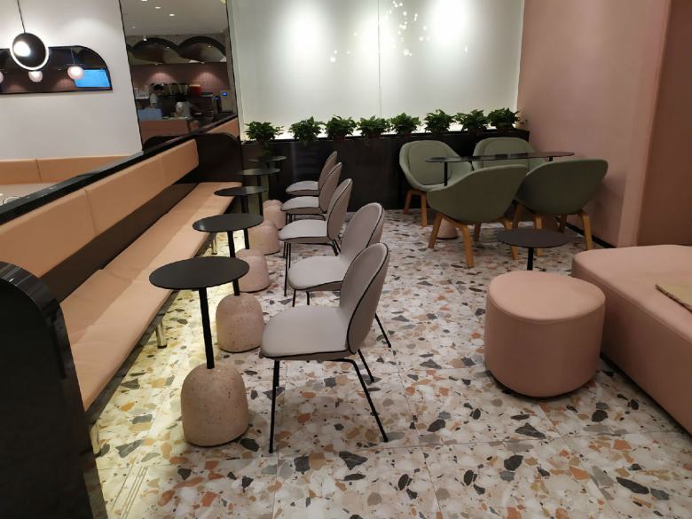 為了讓店里的餐桌椅和卡座沙發(fā)達到理想的效果,經(jīng)過設(shè)計師多次對店面效果進行深化,終于確定了家具搭配方案。休閑餐桌椅配上簡約的卡座沙發(fā),完美的與裝修風(fēng)格融合,既體現(xiàn)出了品牌元素,又迎合了年輕人的視覺審美,柚雪老板在安裝完工之后還特意饒有興致的隨手拍了幾張店里的家具照片分享到了朋友圈。