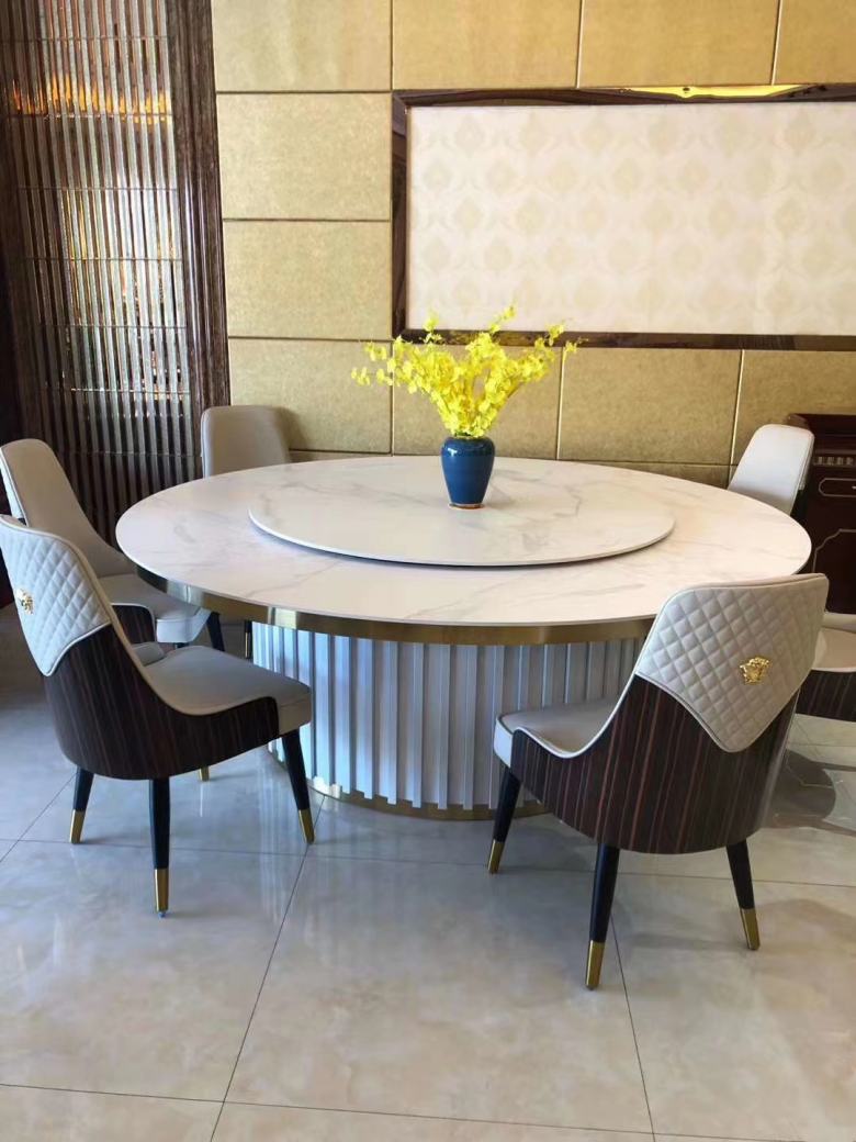 工廠業(yè)務(wù)經(jīng)理打開(kāi)效果圖,仔細(xì)看了一遍餐桌椅的材質(zhì)要求和款式搭配,餐桌主要以大理石桌面為主,餐椅要求使用高回彈海棉和優(yōu)質(zhì)皮革,另外還有部分弧形卡座沙發(fā)以及博古架等配套家具。業(yè)務(wù)經(jīng)理表示,自助餐廳使用大理石餐桌非常好,油漬好清理。而且,去自助餐廳就餐的顧客一般都會(huì)花費(fèi)比一般快餐店長(zhǎng)的時(shí)間享受美食,因此,餐椅的舒適性也很重要!