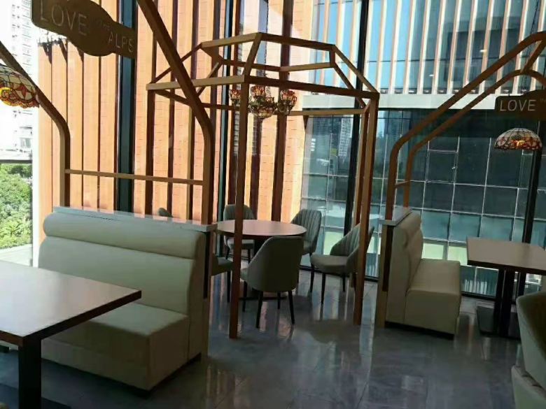 小編忙里偷閑隨手在交貨現(xiàn)場拍攝了幾張店里的照片,通過照片可以直觀的看到餐桌椅安裝之后的效果是非常不錯的,就連卡座沙發(fā)也是非常的有質感,而且偷偷的告訴各位老板,我們可是全國為數(shù)不多的為餐飲客戶提供終身質保的餐桌椅廠家哦!