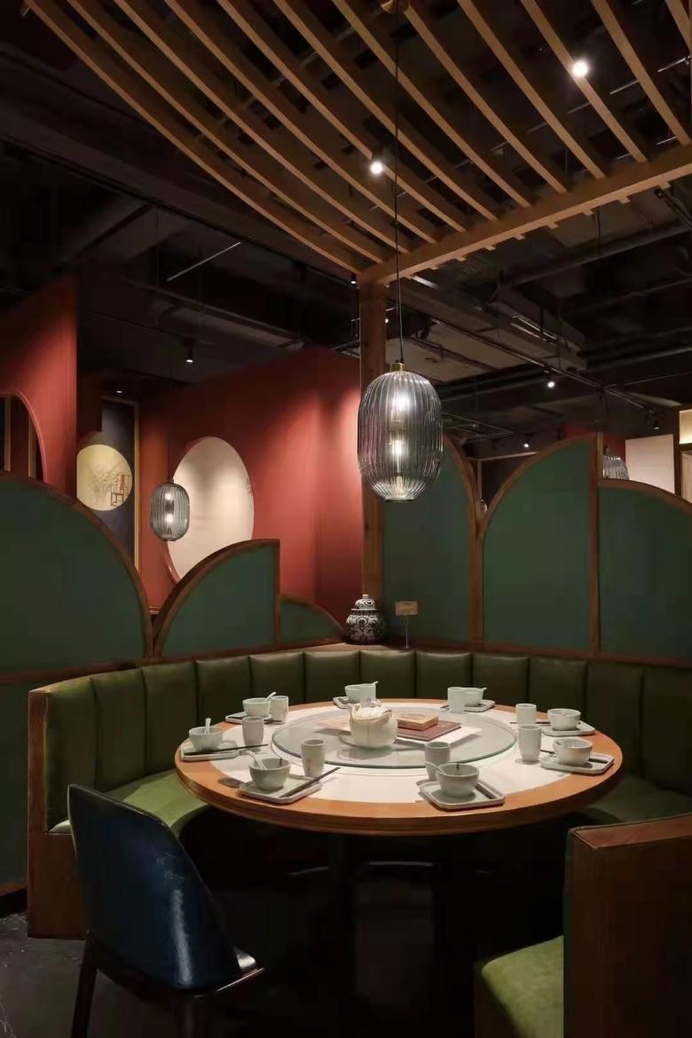西安谷宛記餐廳卡座沙發(fā)木包石餐桌椅定制案例