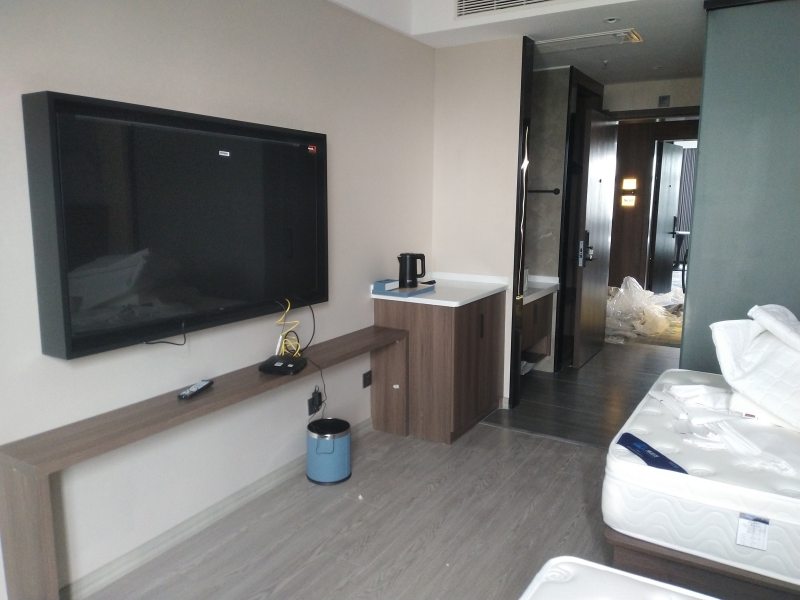 下面,是我們?cè)谖寄舷柭频昱臄z的實(shí)拍圖,沒(méi)有經(jīng)過(guò)任何美化。通過(guò)這些照片展示,可以看到博菲克家具廠在固裝家具加工和施工方面的工藝及水準(zhǔn)如何,在活動(dòng)家具款式和色彩方案搭配上效果如何,也為您在后期選擇可靠的西安酒店家具廠家合作上給予參考!