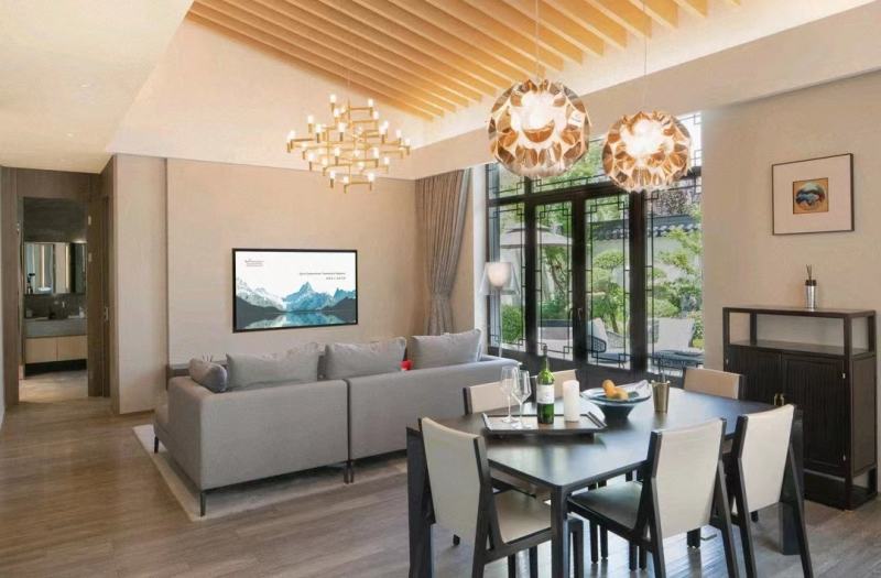 袁家村瑞斯麗溫泉度假酒店隸屬于瑞斯麗酒店及度假村管理集團(tuán),是咸陽市一座國際度假酒店,距離西安咸陽國際機(jī)場40分鐘車程,西安、咸陽兩市驅(qū)車1小時(shí)即可抵達(dá)。酒店位于國家4A級景區(qū)袁家村黃金位置南門里,景區(qū)擁有五條主題街區(qū)(小吃街、書院街、酒吧街、祠堂街、回民街)匯集美食休閑娛樂等資源,北面是九嵕山唐昭陵所在,四面環(huán)山,視野寬闊,風(fēng)景優(yōu)美。 900㎡的室內(nèi)湯池,55個(gè)戶外大小湯池,結(jié)合中草藥配方,使賓客朋友們盡享尊貴的湯池體驗(yàn)。江南風(fēng)格的庭院式套房均配有私家湯池,齊全的居家配套設(shè)施,是您家庭出游、好友聚會(huì)的不二之選。袁家村瑞斯麗溫泉度假酒店擁有60間豪華客房與13套庭院式豪華合院,滿足不同人群的需求。暖色系的客房,自帶溫柔閑適的氛圍感。酒店精心定制的“瑞斯麗夢之床”,足夠讓你享受酣睡美夢。