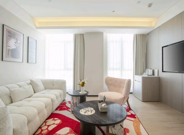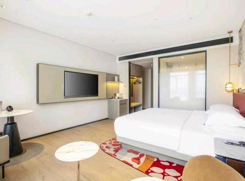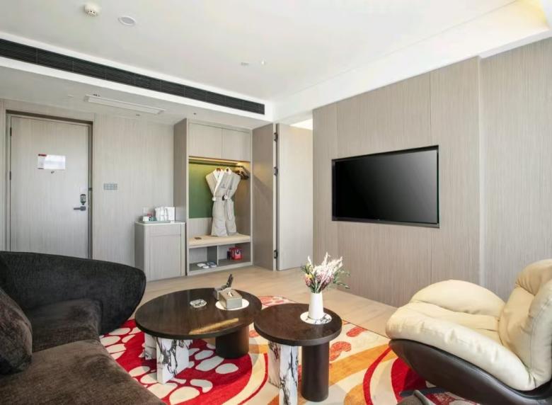 平?jīng)鰵g閱酒店環(huán)保性好,床、柜等選用E0級(jí)板式家具,移動(dòng)家具則由我廠負(fù)責(zé)搭配設(shè)計(jì),與客房整體風(fēng)格協(xié)調(diào),并且更好的提升了室內(nèi)空間的氛圍感和時(shí)尚感。