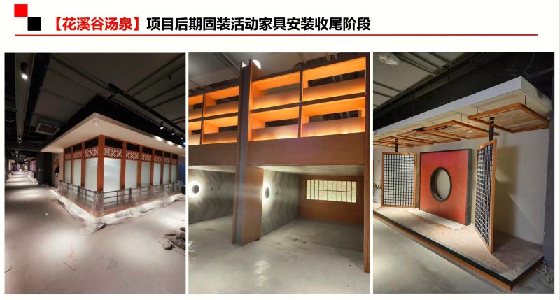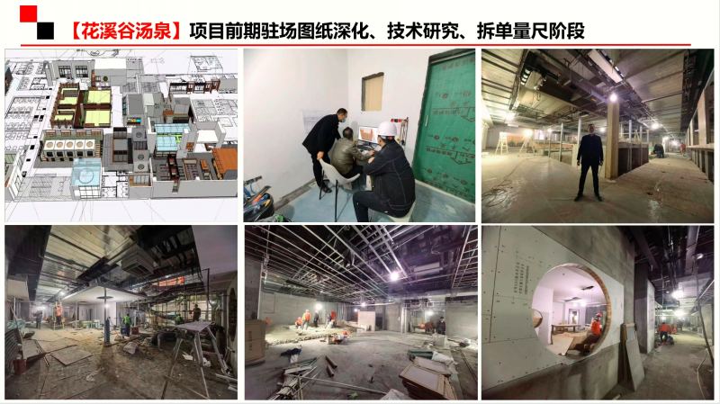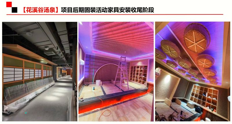 在得知這么重要的客戶要過來考察,公司領(lǐng)導也格外重視。下班前便通知設(shè)計部、項目部主管開會,認真研究討論花溪谷湯泉的固裝及異型木作家具技術(shù),提取施工不確定工藝材質(zhì)作為次日見面溝通的重點,并安排設(shè)計師連夜提量對已經(jīng)明確的家具部分做報價單。