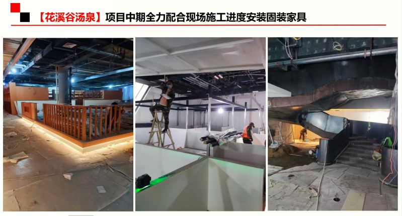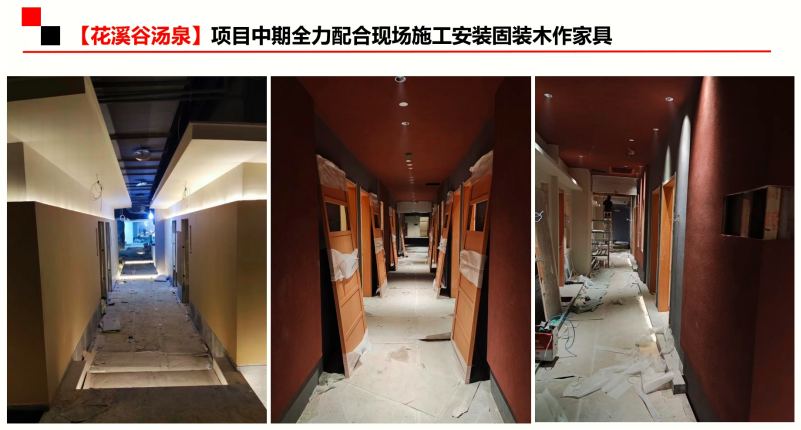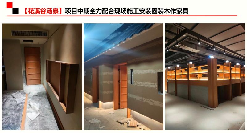 在和花溪谷湯泉投資方達成合作后,我廠隨即安排具有豐富經(jīng)驗的項目經(jīng)理負主責,另配備了三名家具深化設(shè)計師進行工作輔助。疫情期間,上下班工地家里來回跑也不方便,索性他們干脆就吃住在工地,雖然睡在工地環(huán)境艱苦了,但工作起來更加高效。